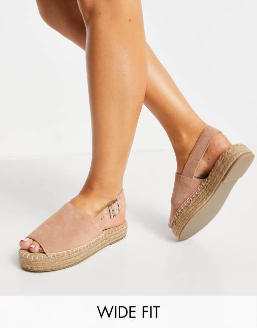 Simply Be Wide Fit – Stenfärgade flatform-sandaler med hälrem