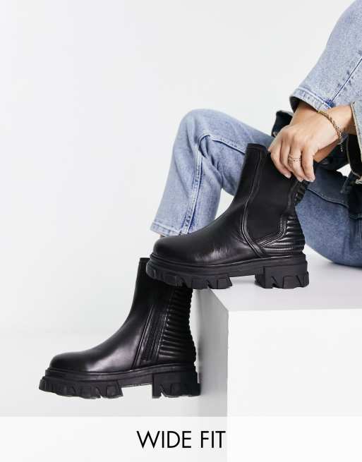 Simply Be Wide Fit – Svarta ankelhöga chelseaboots i läder med grov räfflad sula