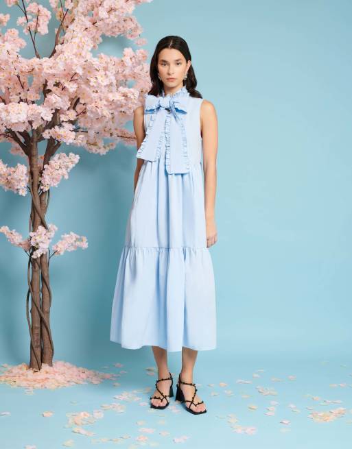 Sister Jane – Blå skjortklänning i midilängd med rosett