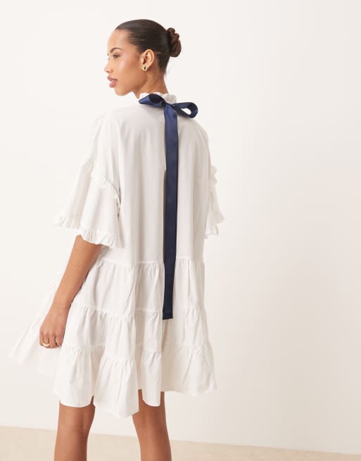 Sister Jane – Pärlvit miniklänning med kontrastfärgad rosett