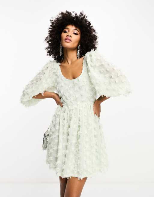 Sister Jane – Salviagrön miniklänning med fuskfjädrar
