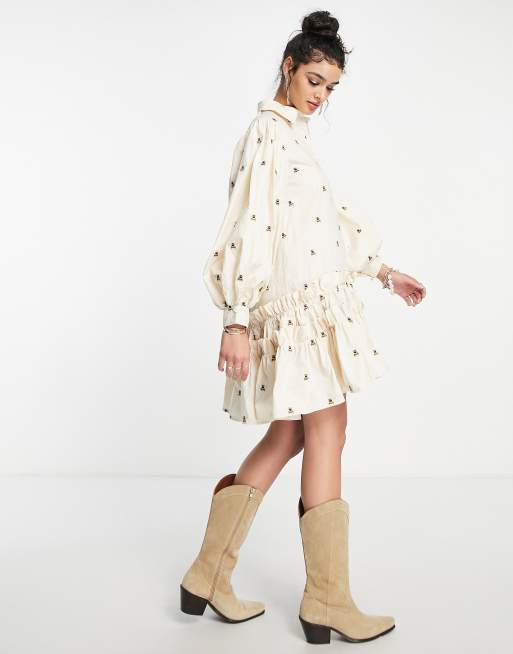 Sister Jane – Smockklänning i minilängd med sänkt fåll och broderade bin