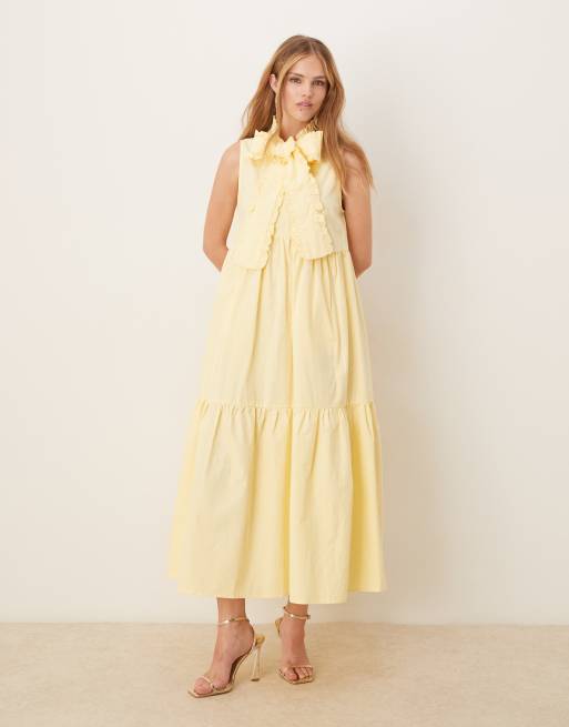 Sister Jane x ASOS – Citrongul, midilång skjortklänning med rosett