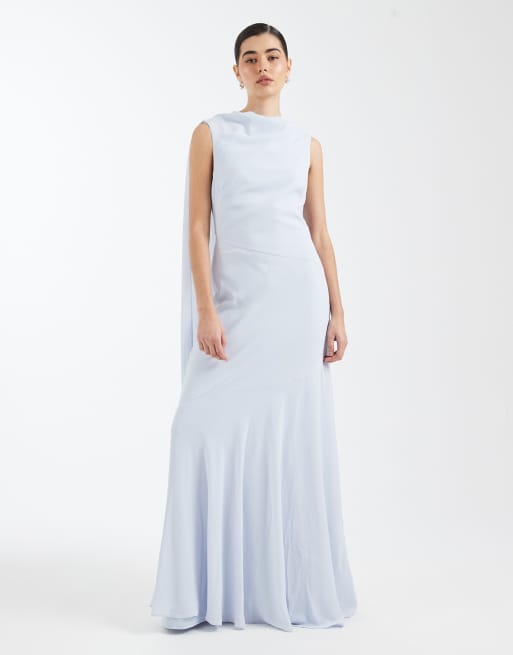 Six Stories – För bruden – Blekblå maxiklänning i crepe med hög, draperad ringning