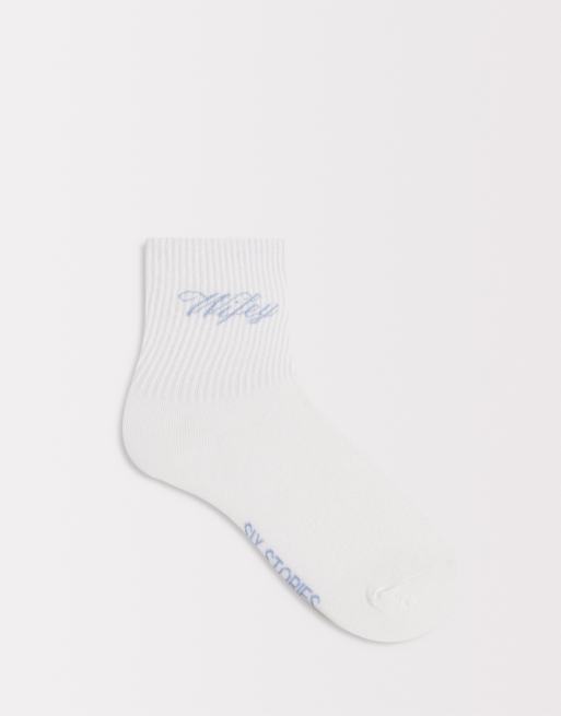 Six Stories – För bruden – Strumpor med blå 'Wifey'-text