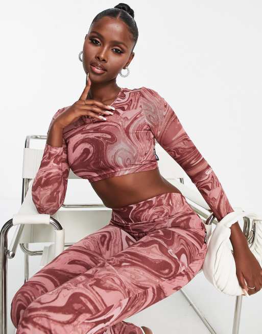 Sixth June – Rosa långärmad crop top i mesh, del av set