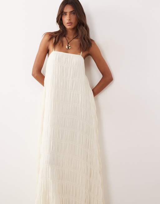 SNDYS – Ostronvit, smockad, a-linjeformad maxiklänning med smala axelband