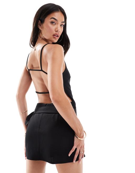 SNDYS – Svart miniklänning med halterneck, bar rygg och skärp