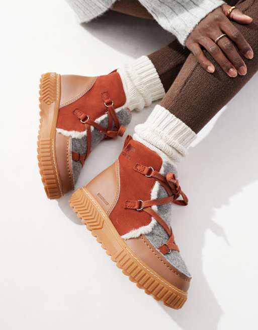 Sorel – ONA AVE Alpine WP – Bruna, röda och vattentäta läderboots med fleecefoder