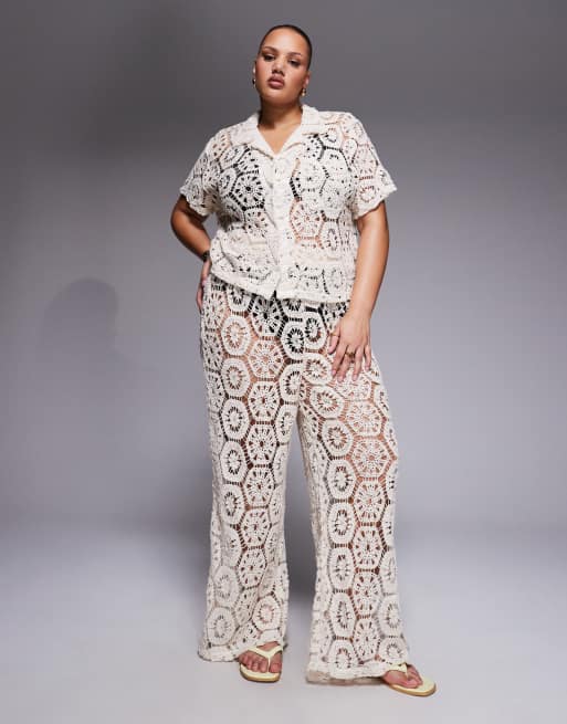 South Beach Curve – Gräddvitt virkat strandset