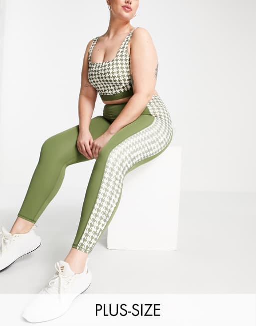 South Beach Plus – Kakigröna leggings med hundtandsmönstrade paneler