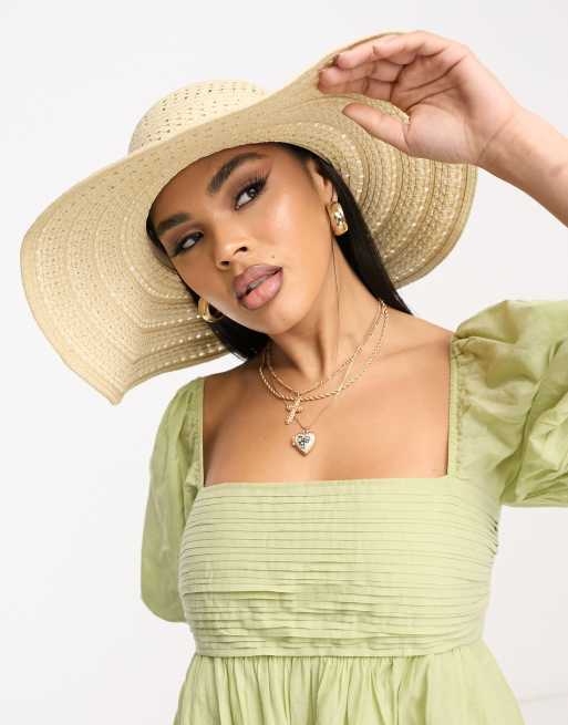 South Beach – Beige hatt med brett brätte