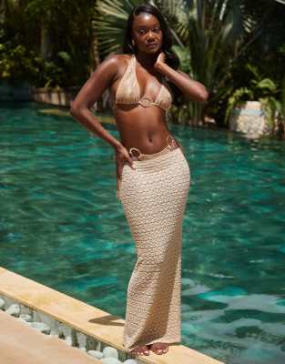 South Beach – Beige, popcornstickad strandkjol i maxilängd