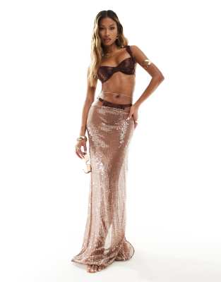 South Beach – Brun strandkjol i maxilängd med paljetter
