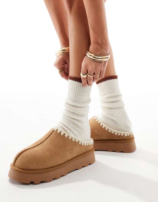 South Beach – Ljusbruna mules i fårskinn och slip in-modell med platåklack