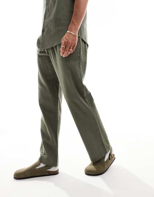 South Beach – Olivfärgade, vävda strandbyxor med textur