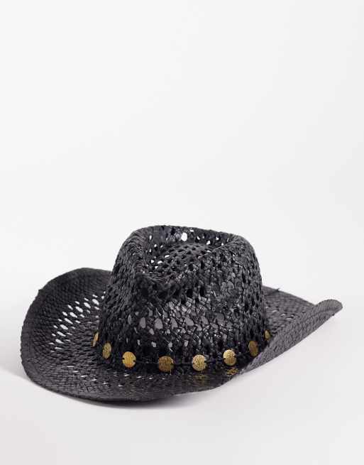 South Beach – Silverfärgad cowboyhatt i strå med myntkant