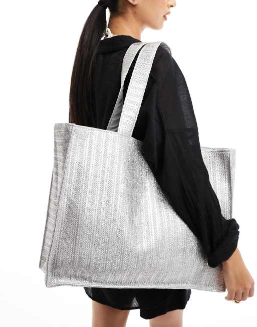 South Beach – Silvermetallisk, vävd toteväska med axelband