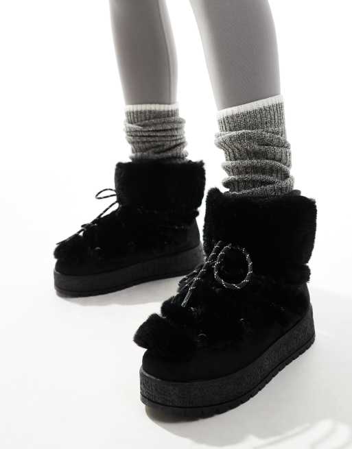 South Beach – Svarta vinterkängor i fuskpäls med snörning