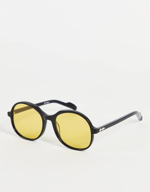 Spitfire – Cut Twenty Seven – Svarta runda solglasögon i oversize med citrongula glas för kvinnor