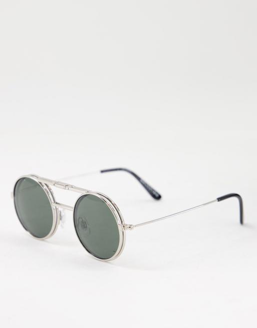 Spitfire – Lennon – Silverfärgade runda solglasögon med svarta glas och uppvikt design