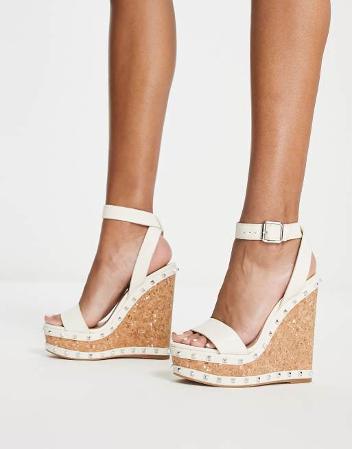 Steve Madden – Behati – Benvita kilklackar i läder med korksulor och nitar