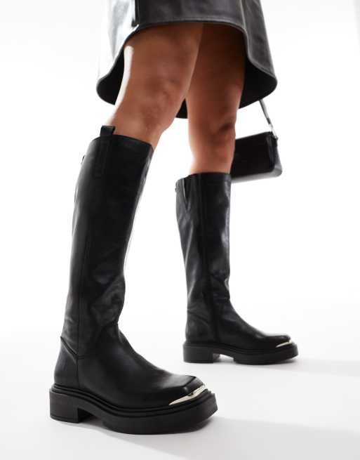 Steve Madden – Constance – Svarta, knähöga boots i läder