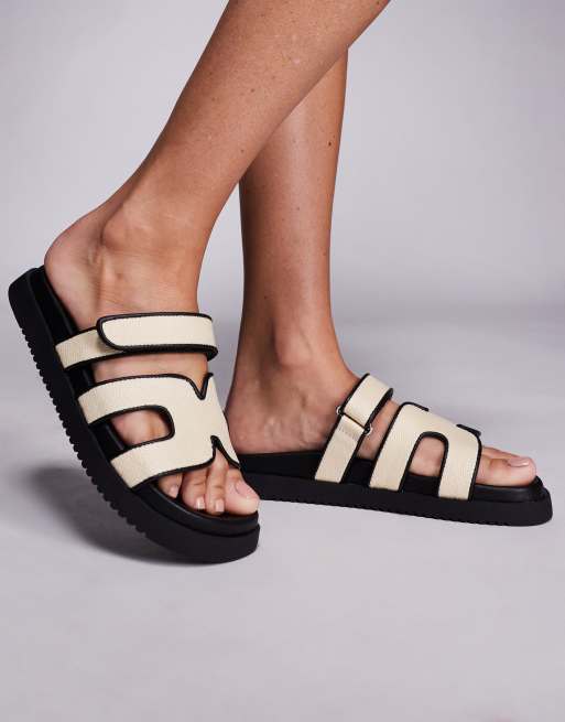 Steve Madden – Missile – Gräddvita sandaler i läder med kontrasterande remmar