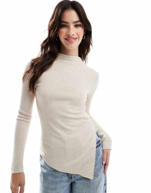 Stradivarius – Beige, finstickad, asymmetrisk topp