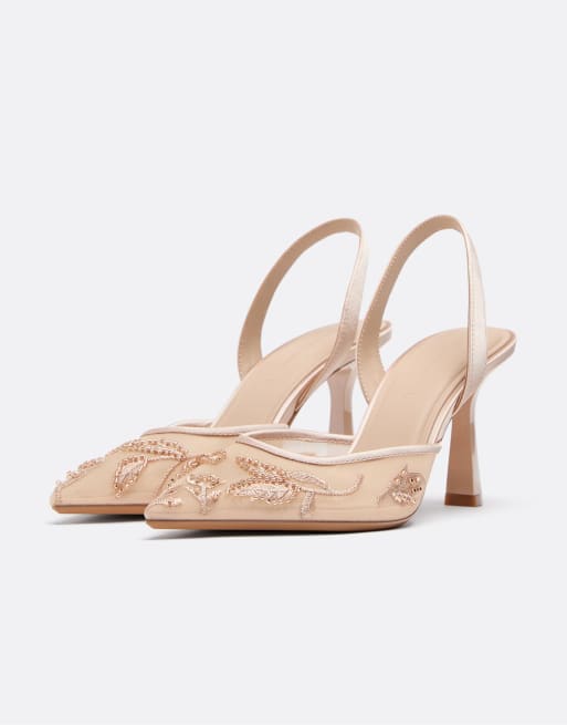 Stradivarius – Beige klackskor med utsmyckningar