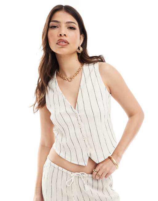 Stradivarius – Beige, kritstrecksrandig kostymväst med boxig passform, del av set