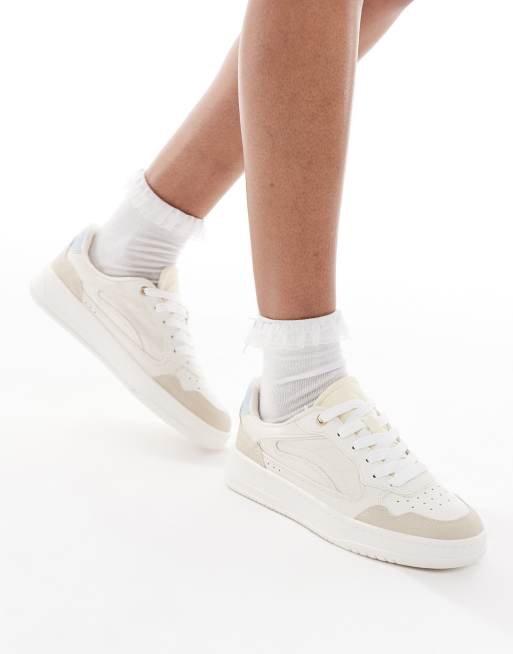 Stradivarius – Beige och vita sneakers med platåsula