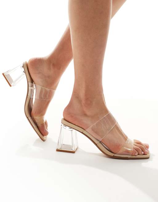 Stradivarius – Beige sandaler i vinyl med blockklack