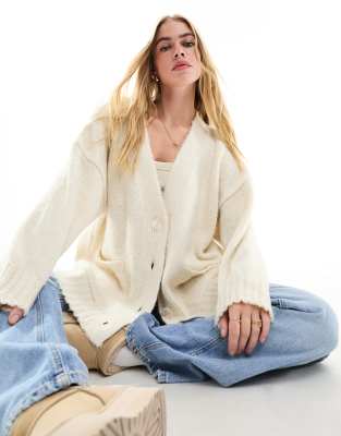 Stradivarius – Beige, stickad kofta i oversize