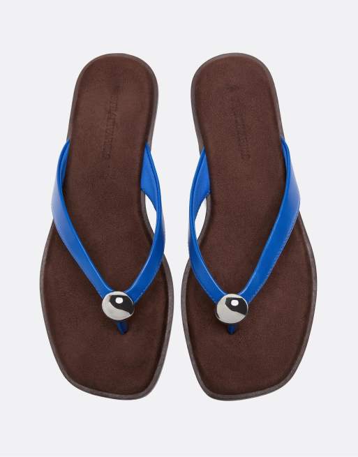 Stradivarius – Blå klacksandaler med kilklackar och tårem