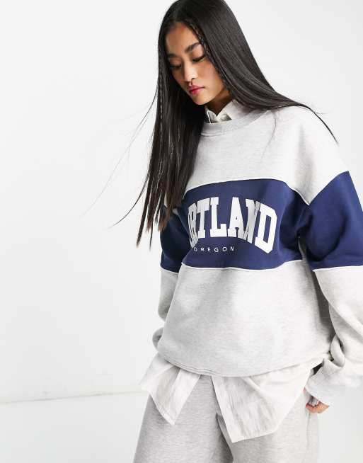 Stradivarius – Blå sweatshirt i oversize med Portland-tryck