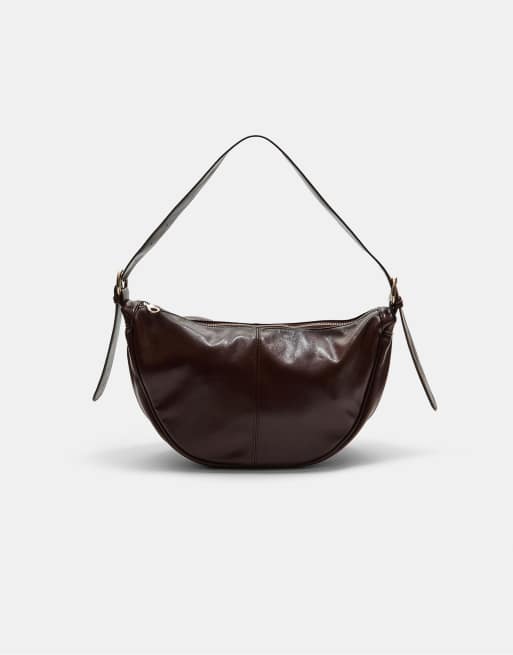 Stradivarius – Brun, halvmåneformad väska i läderimitation