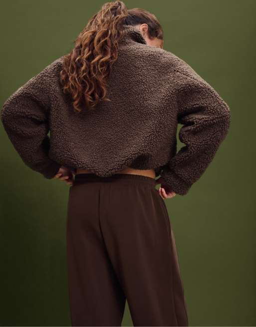 Stradivarius – Brun jacka med dragkedja och foder av fårskinnsimitation