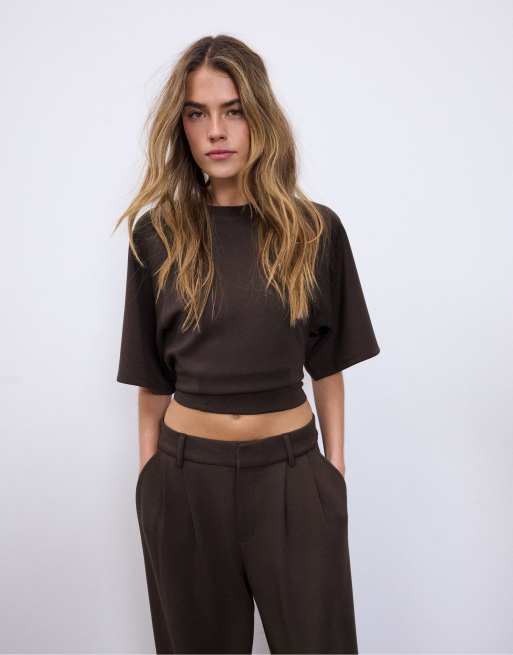 Stradivarius – Brun, mjuk t-shirt med korta ärmar