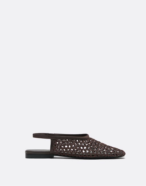 Stradivarius – Bruna flätade tofflor i babouchestil