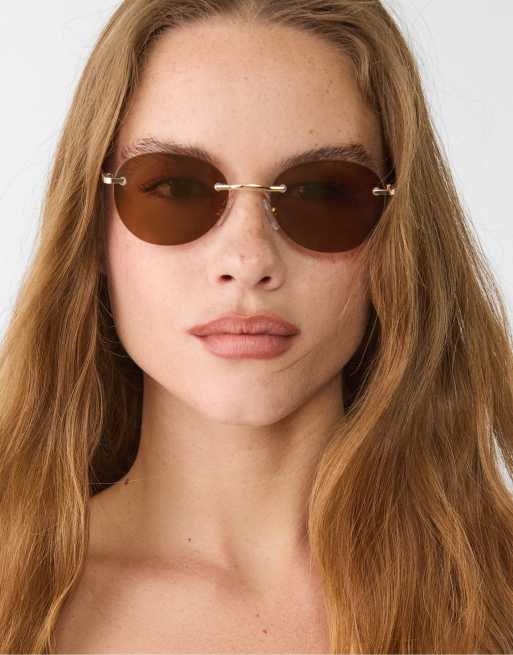 Stradivarius – Bruna, ovala solglasögon i metall