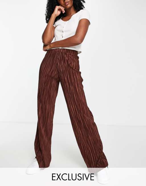 Stradivarius – Chokladbruna plisserade byxor, del av set