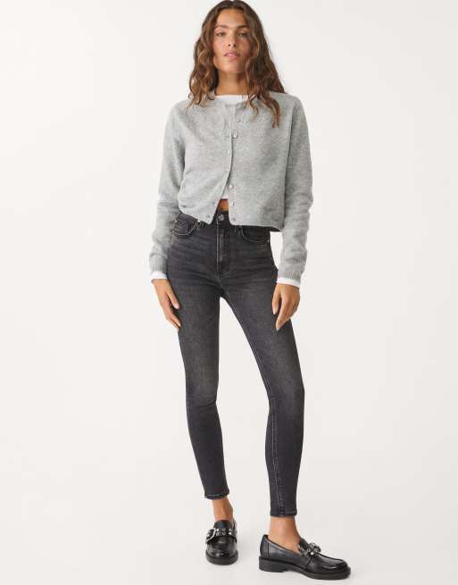 Stradivarius – D09 – Bleksvarta, skinny jeans med superhög midja