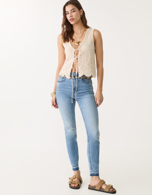 Stradivarius – D09 – Ljusblå, skinny jeans med superhög midja