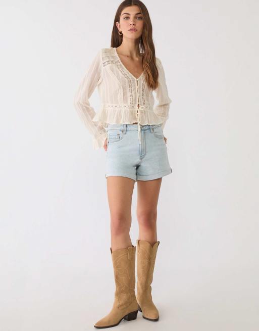 Stradivarius – D85 – Mellanblå, smala mom shorts