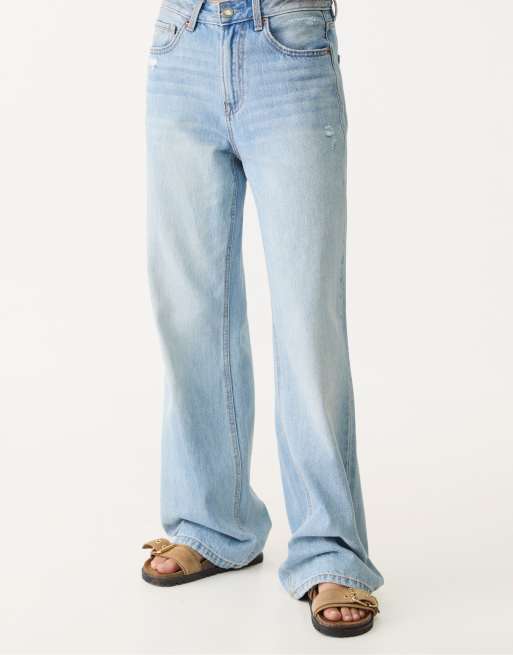 Stradivarius – D92 – Ljusblå jeans med vida ben