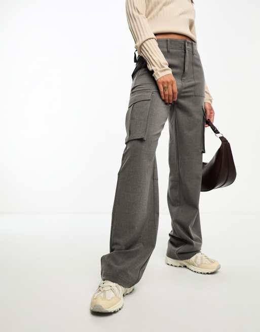 Stradivarius – Grå, figursydda cargobyxor med justerbar midja