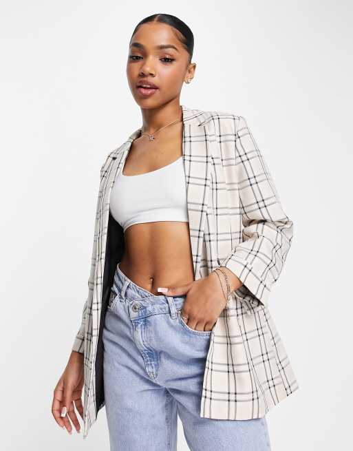 Stradivarius – Gräddvitrutig, dubbelknäppt kavaj