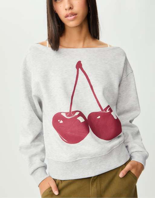 Stradivarius – Gråmelerad sweatshirt med körsbärstryck