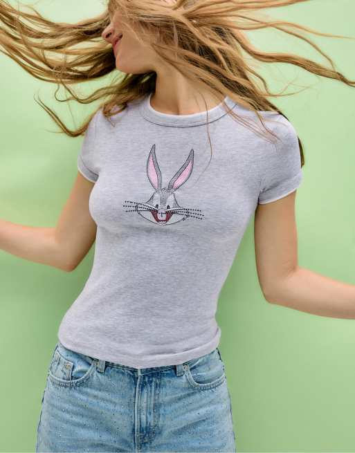 Stradivarius – Gråmelerad t-shirt med korta ärmar och Snurre Sprätt-tryck